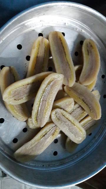 3.ตั้งซึ้งนึ่งรอน้ำเดือดใส่กล้วยน้ำว้าลงไปนึ่งประมาน35นาที กล้วยจะหนึบพอดี